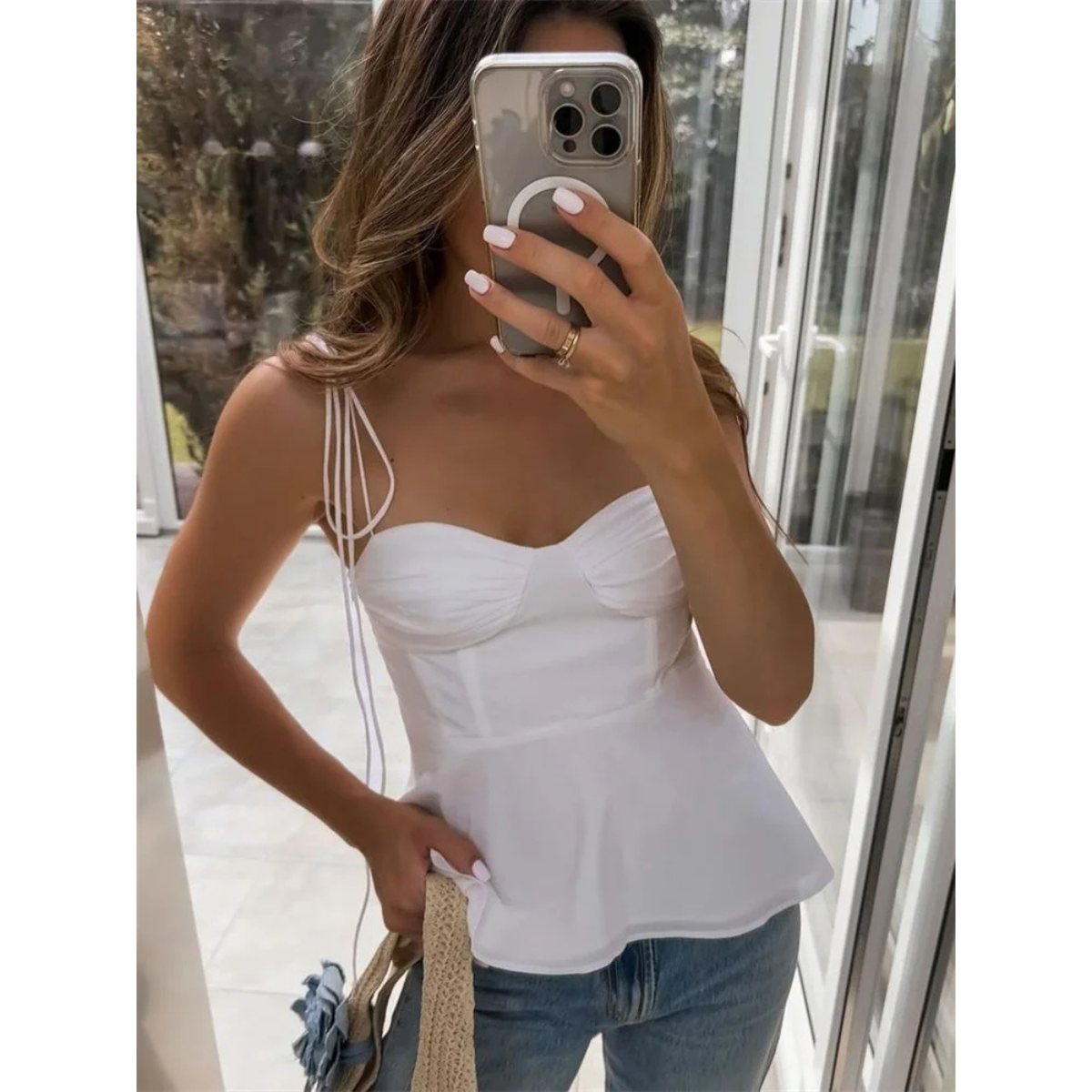 Caraco en satin Murielle – Top blanc bustier à bretelles fines ajustables
