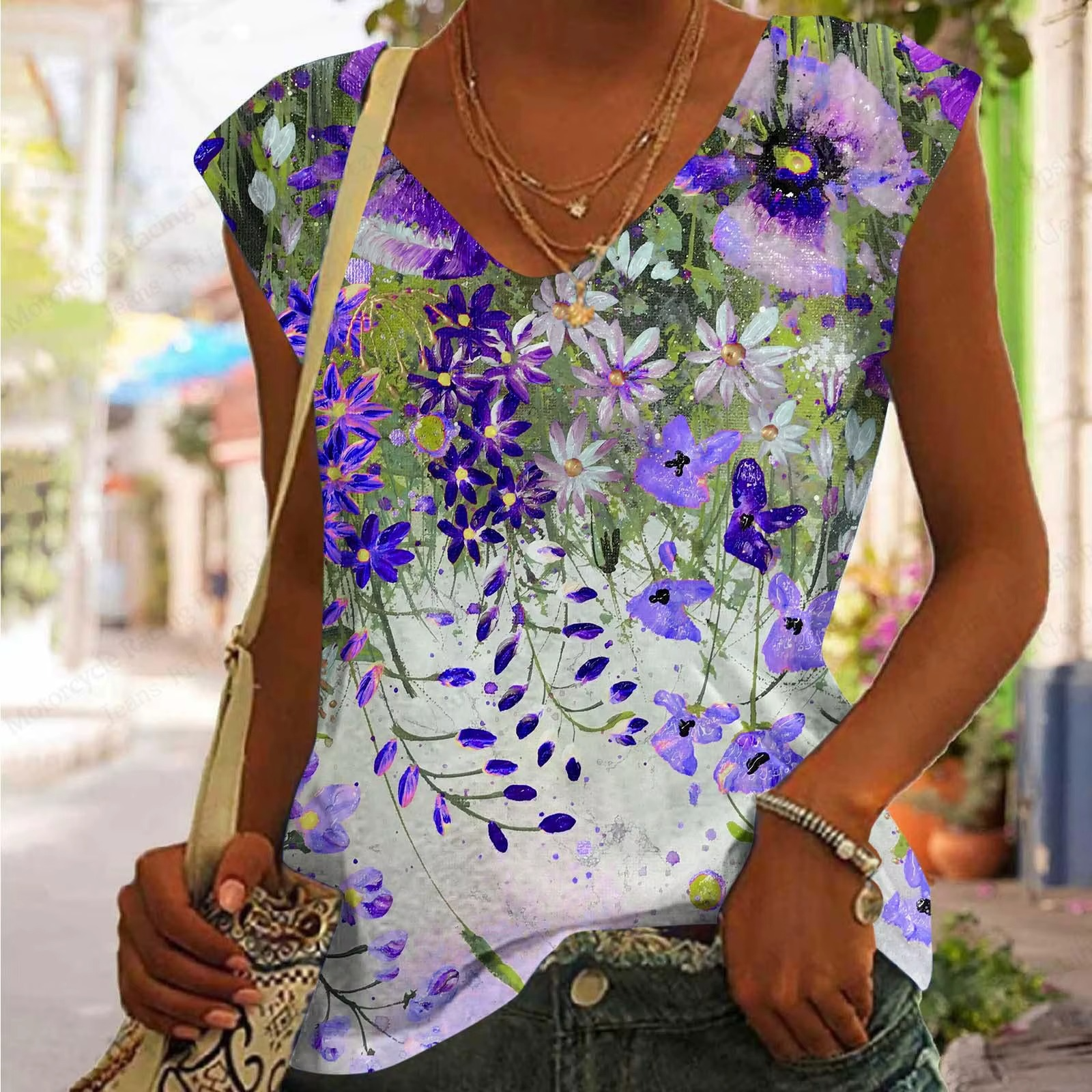 Caraco en satin fleuri Ronisia – Top col en V à imprimé floral violet, chic et estival